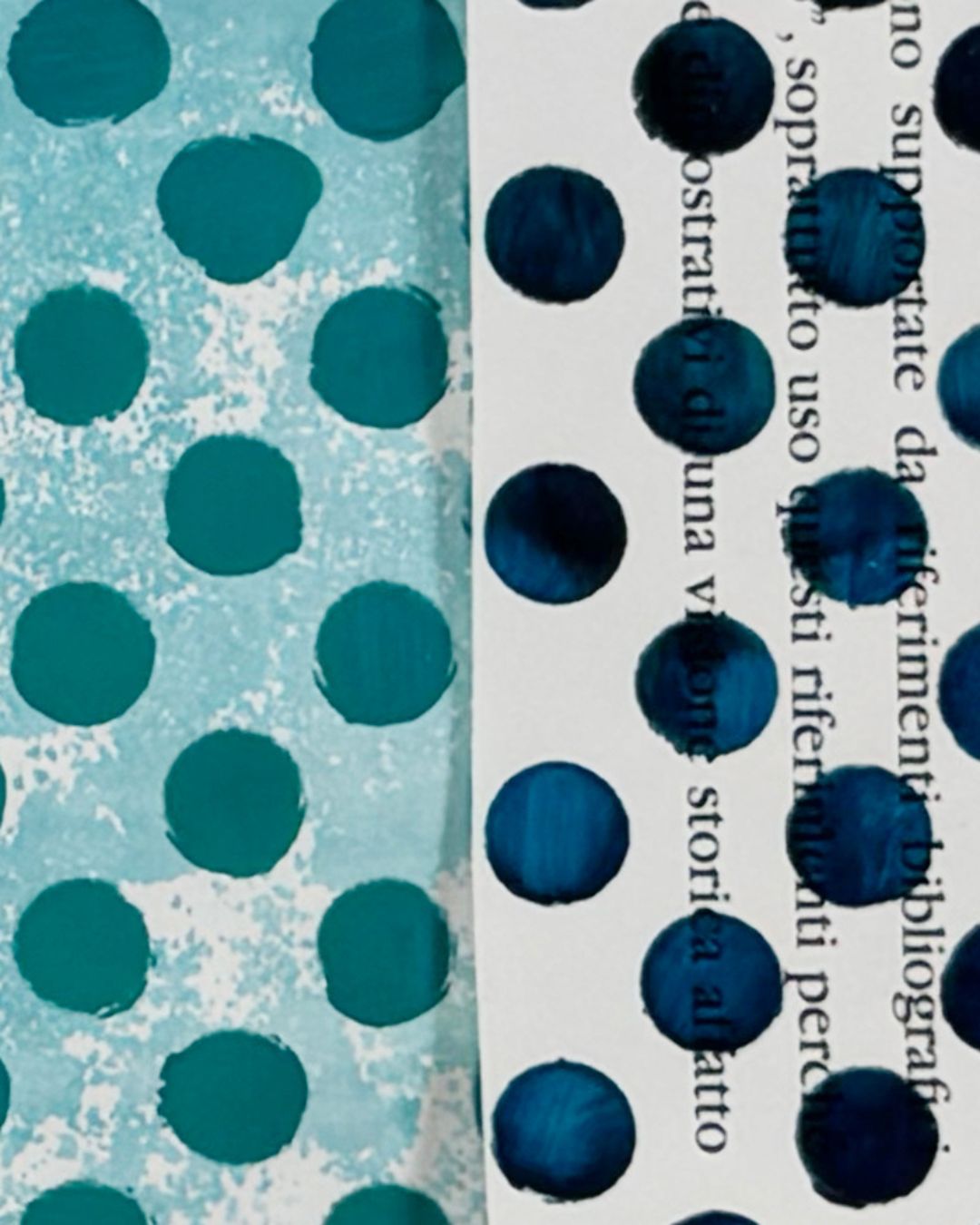 All you need are stencils with small openings (polka dots are my personal favorite), acrylic paint, and papers you already have. I especially love doing this technique over text-based papers, such as old book pages, music sheets, letters, or newspapers, because when paint settles over words, it quietly embeds meaning into the work. Those words matter to me, and I love knowing they’re part of the collage, even if they’re no longer fully readable.