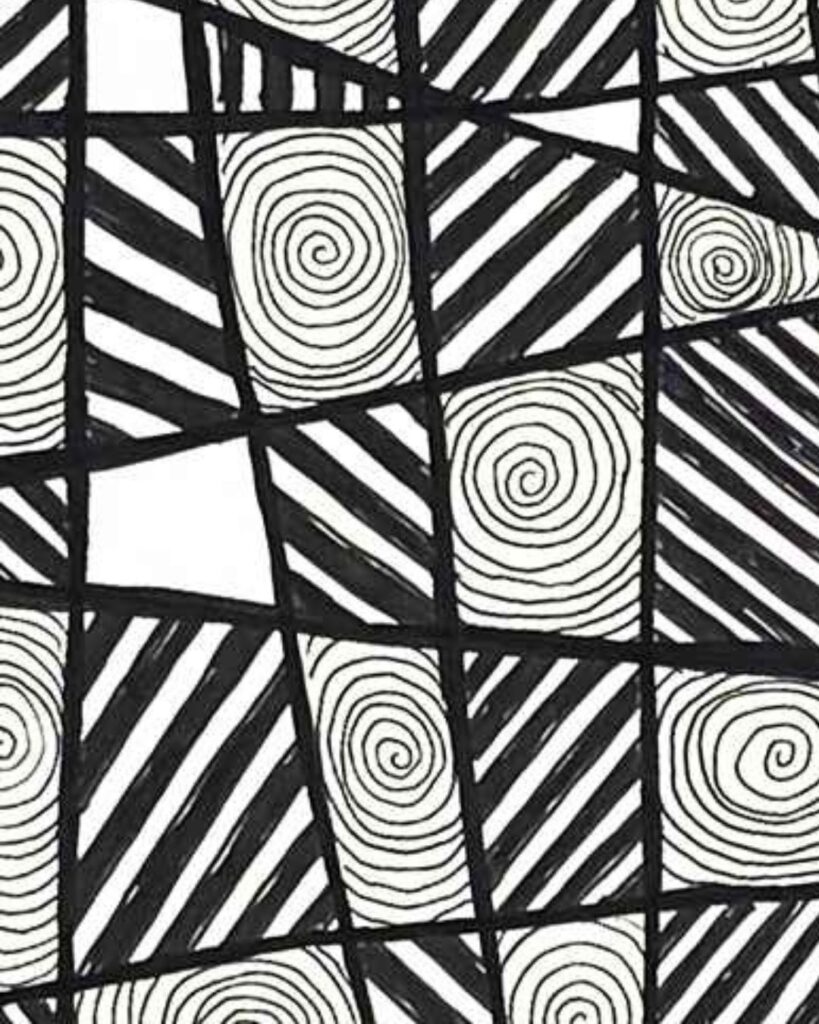 To kick things off I demonstrate a really fun design on black drawing paper using a white gelly roll pen. This is a super simple process – you just draw straight lines in different diagonals to form small diamond shape designs. Then, fill these diamonds with lines in various directions. Or, you can play with keeping the diamonds empty and see how that changes the look and feel of your paper!