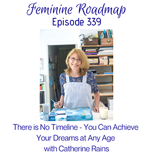 This is what host Tracy James said about our conversation – “Transitioning from Corporate job to full-time mixed media artist, Catherine Rains is an inspiring example of the process of making profound shifts in your life through embracing what currently is. Cat shares the story of finding her way to her deepest desire through the practices of asking for clear signs from the Universe, taking action on those signs, and falling in love with her life exactly as it is in every moment, no matter how difficult things might appear to be.