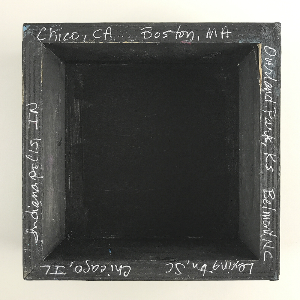 - The 7 cities this collage traveled to in the process of its creation are written on the back edge