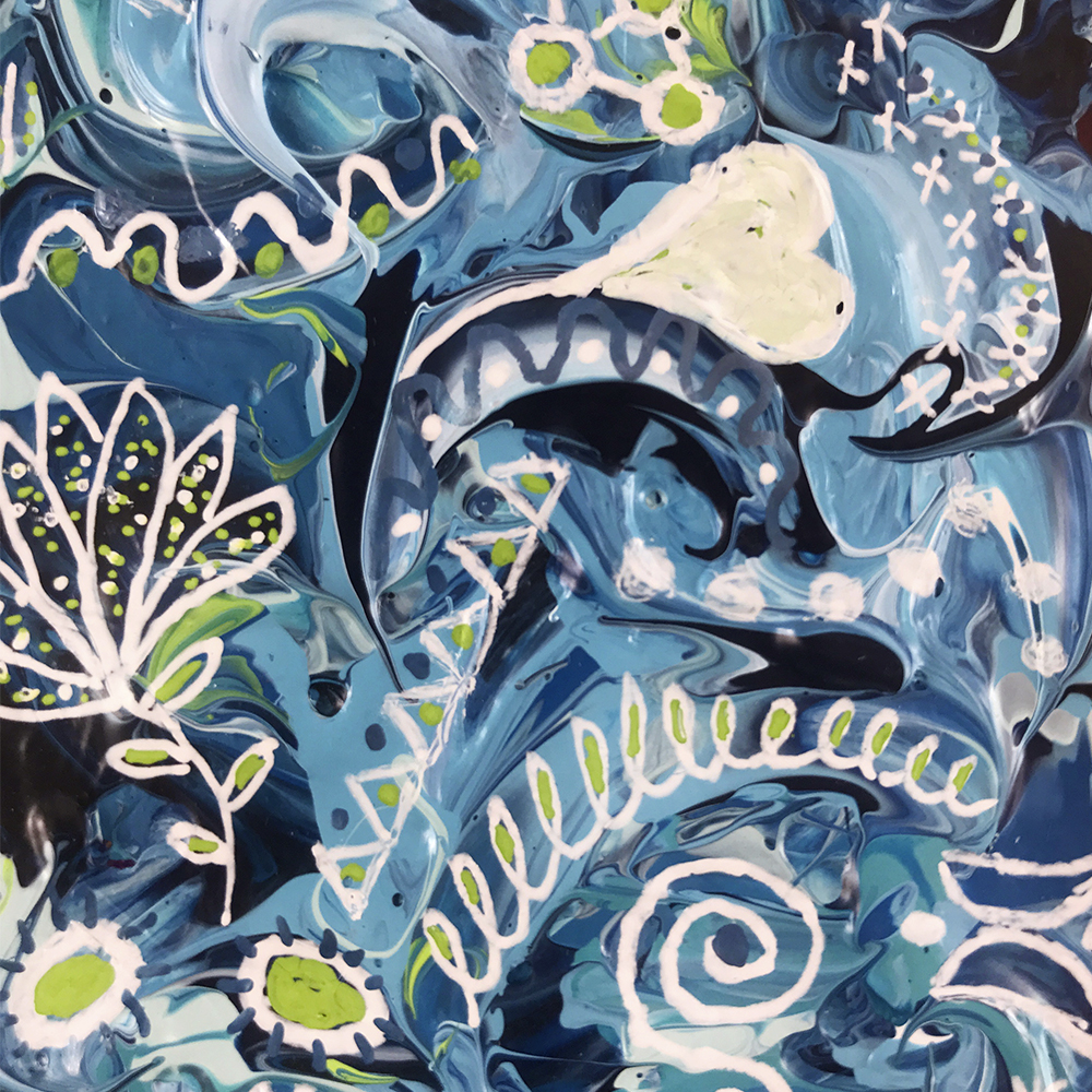 Every abstract painting in the “Hidden Blessings” collection has a blessing embedded into the painted design, and is intended to inspire and support the path of the person who holds it with the energy of this word.