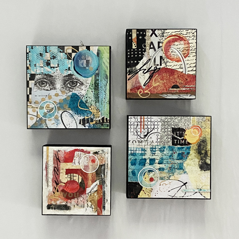 By silencing the ego and allowing a higher power to create through me, each collage becomes a collaborative creation, resulting in an artwork that is divinely connected to all there is. The title for each collage painting reflects this connection, offering a spiritual message to whomever this artwork was ultimately created to serve.