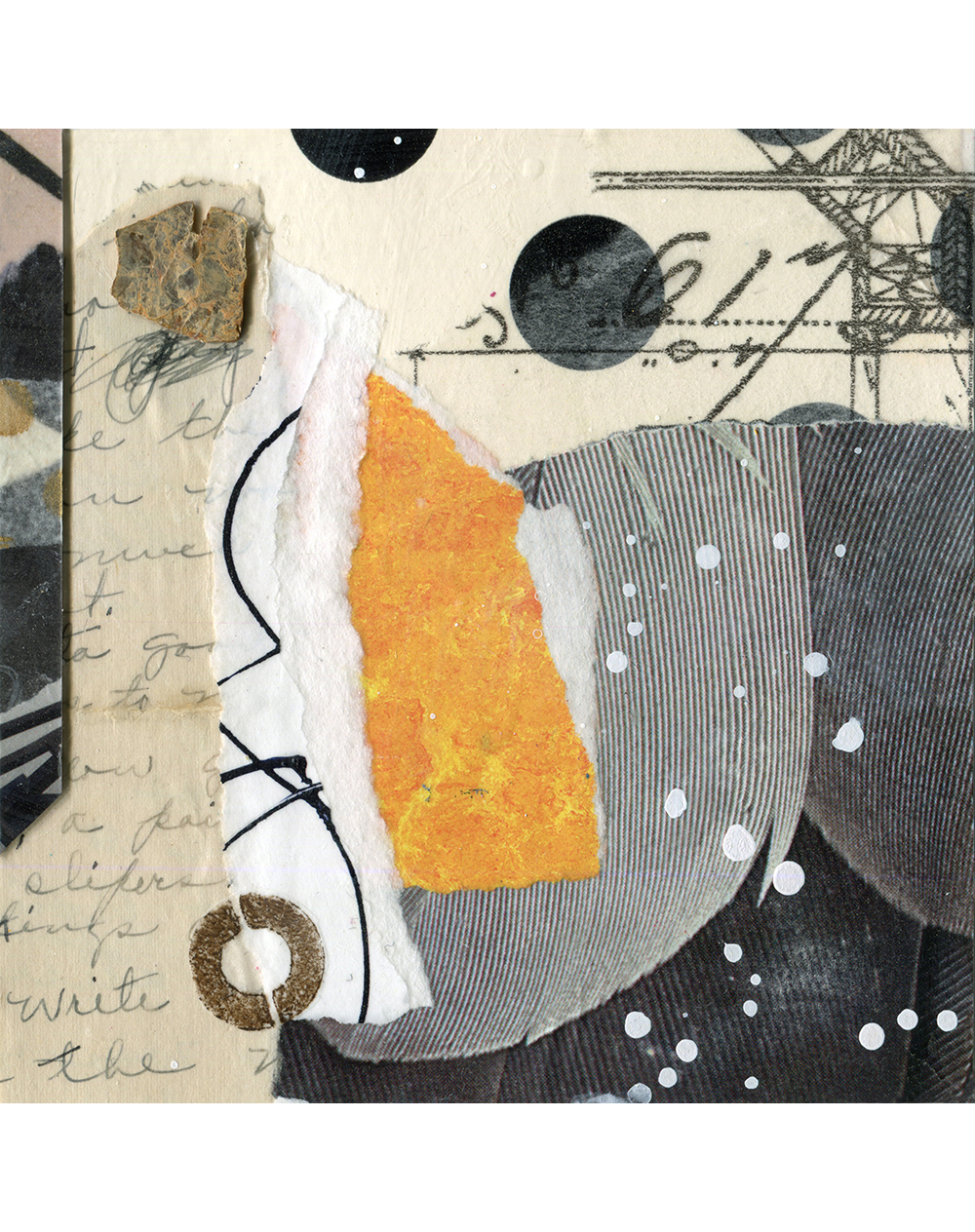 For me this is where the mind stops and the heart opens to allow a higher power to create through me. Thus each collage is a collaborative creation, where I listen and follow what I’m “told” to do next, resulting in artwork that is Divinely connected.