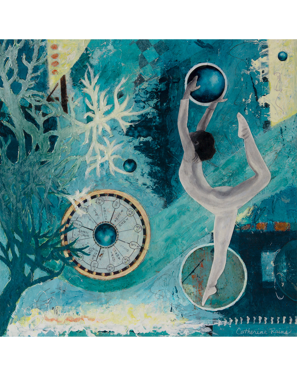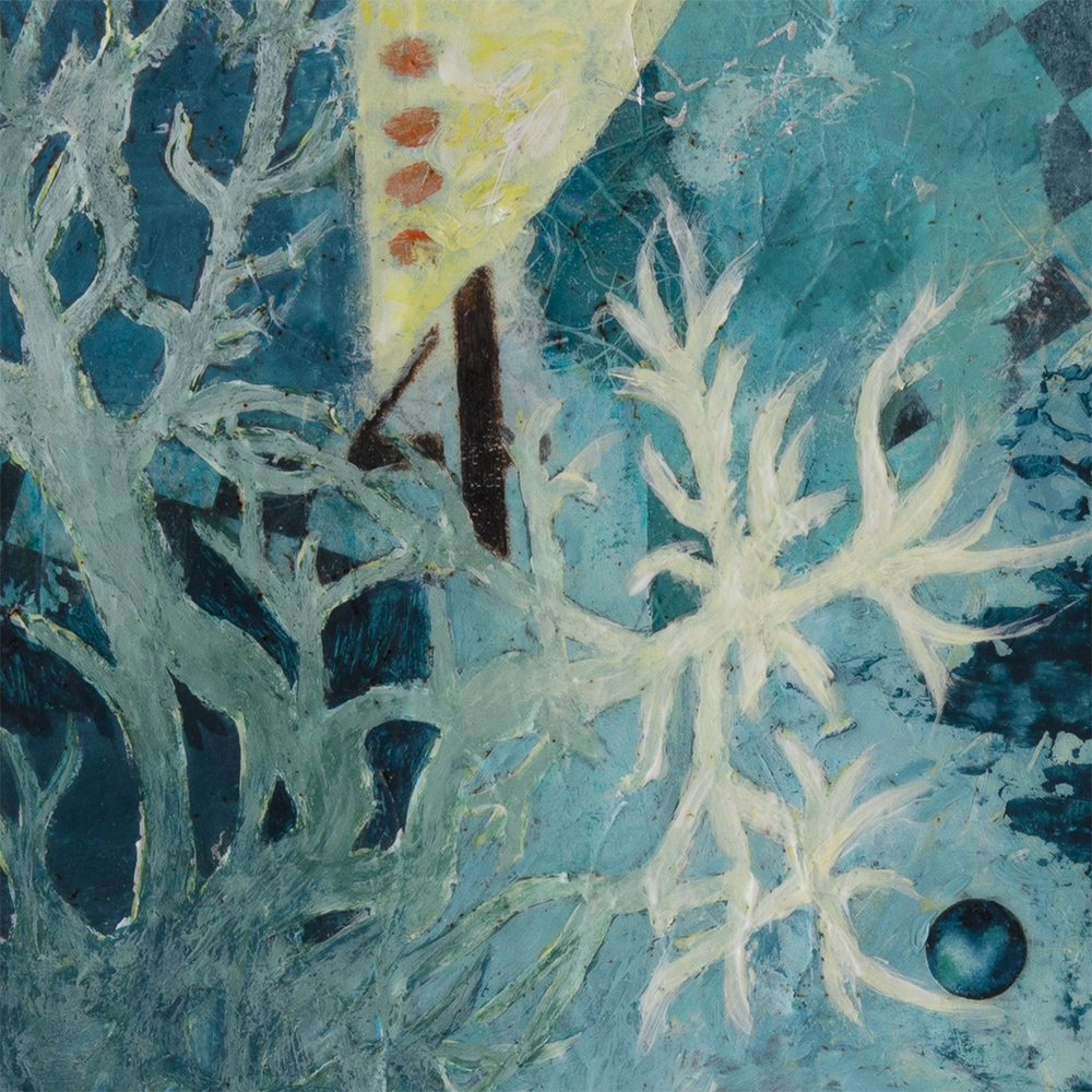 - Created with 10+ layers of acrylic paint and paper on wood panel