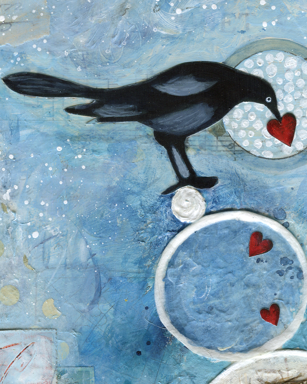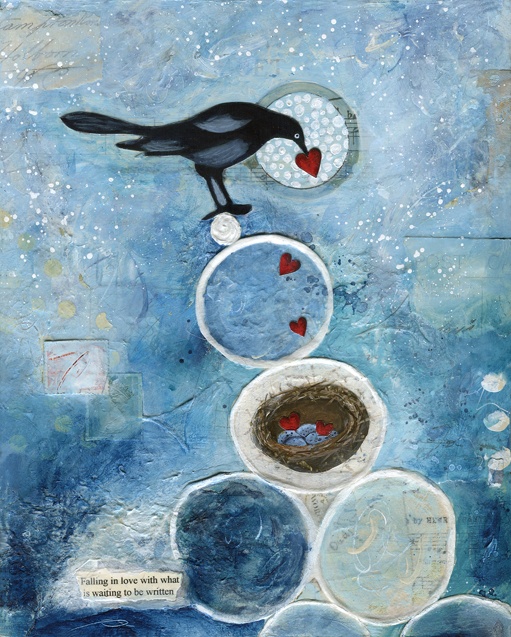 - Created with acrylic, ink and paper on wood panel