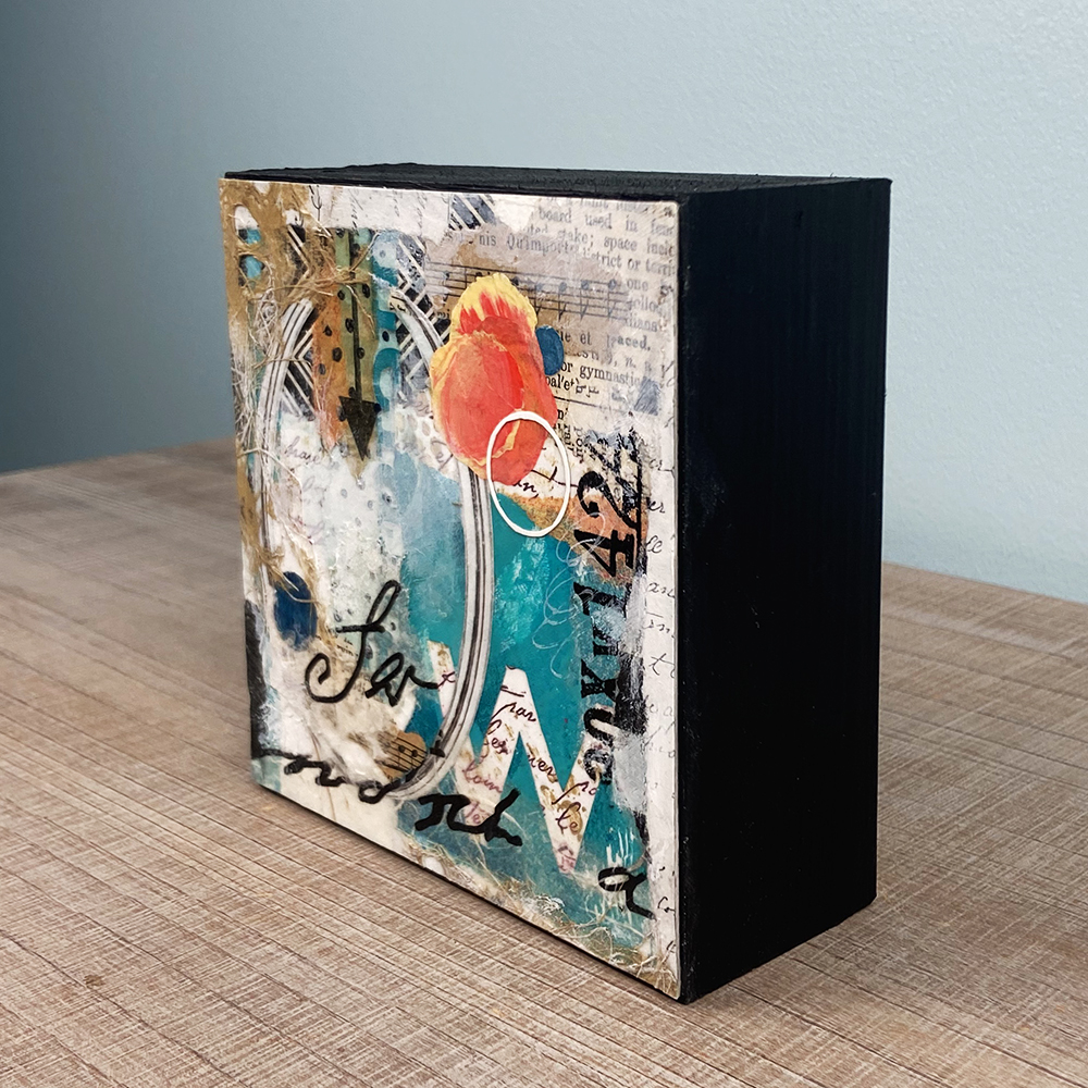 • Created with hand-painted monoprints, collage papers, and acrylic paint