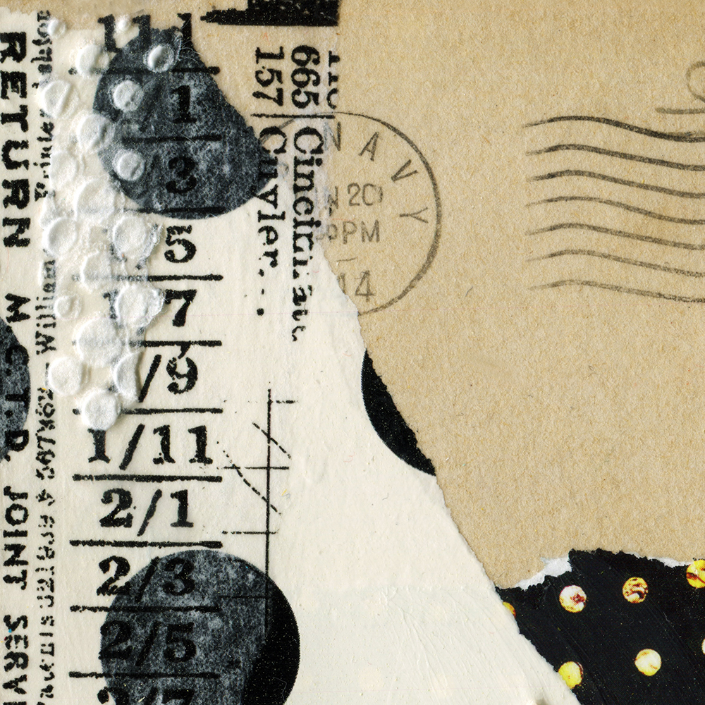 For me this is where the mind stops and the heart opens to allow a higher power to create through me.  Thus each collage is a collaborative creation, where I listen and follow what I’m “told” to do next, resulting in artwork that is Divinely connected.