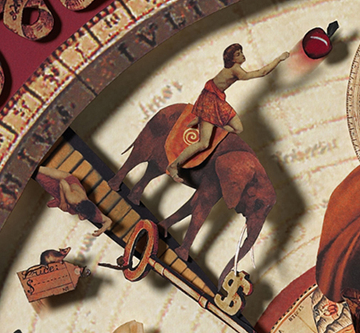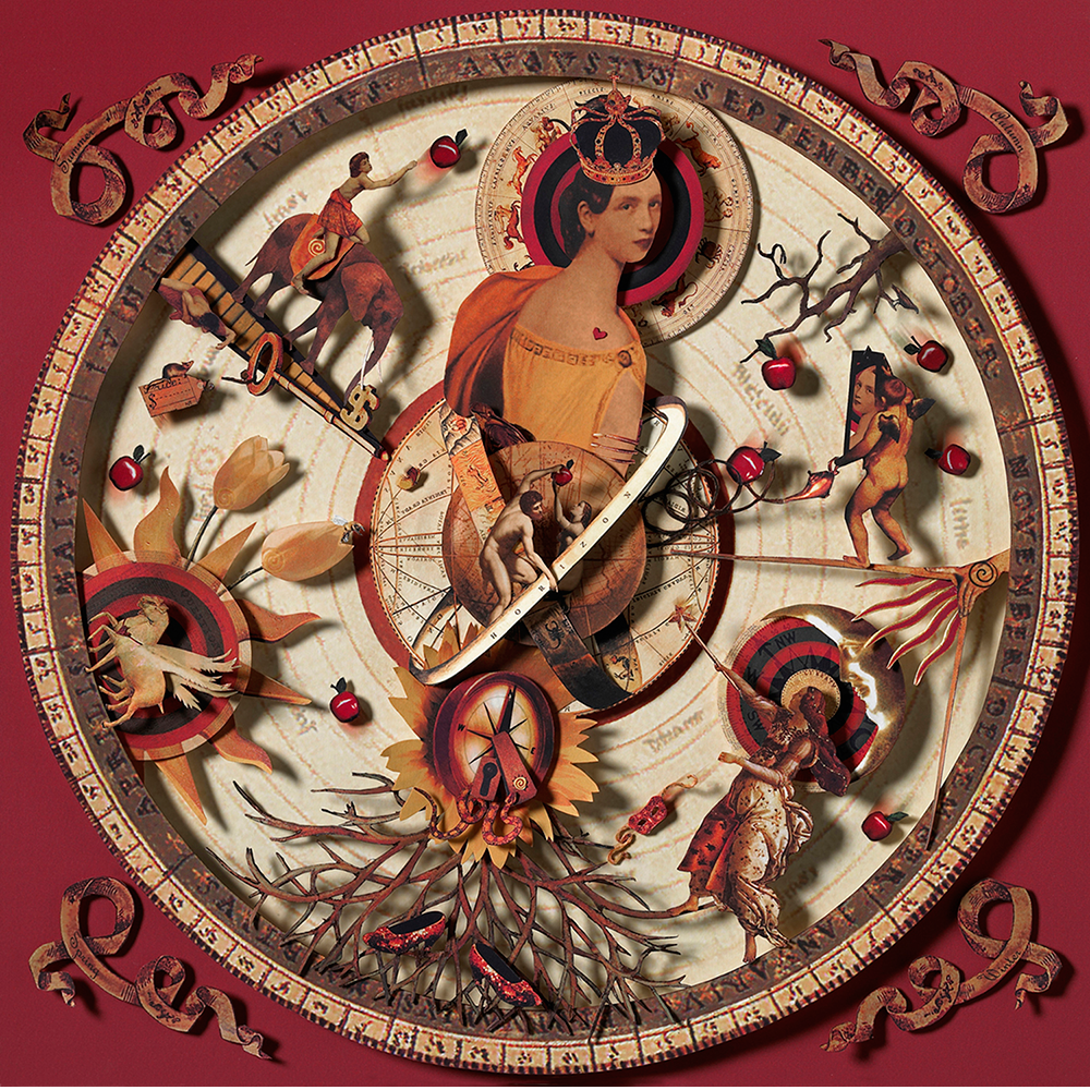 Of all the art I have created, this is my favorite (so far!) because of its complexity in both meaning and layers of collage elements. This collage shows the 4 seasons of our life, starting with Fall (angel showing us our reflection so we can see ourselves more clearly) and ending with Summer (boy on the elephant manifesting our desires into the world), each giving us what we most need to learn during that period. And the circle of growth never ends – we continue to go round and round the seasons, learning new lessons for our souls evolution as we pass through each.