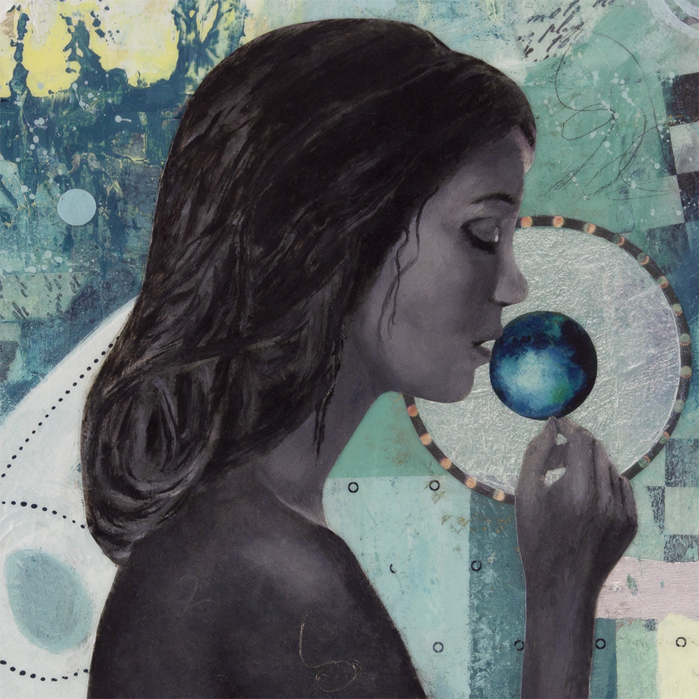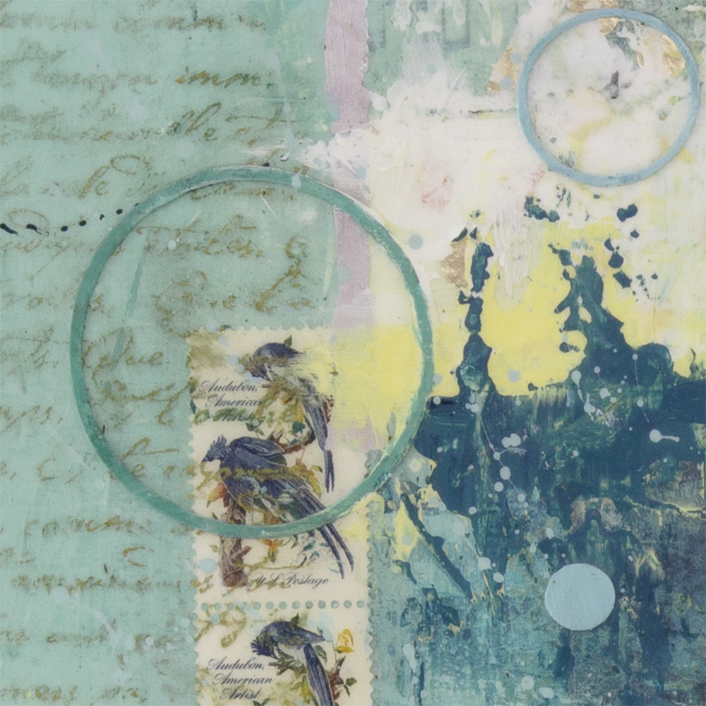 - Created with 10+ layers of acrylic paint and paper on wood panel