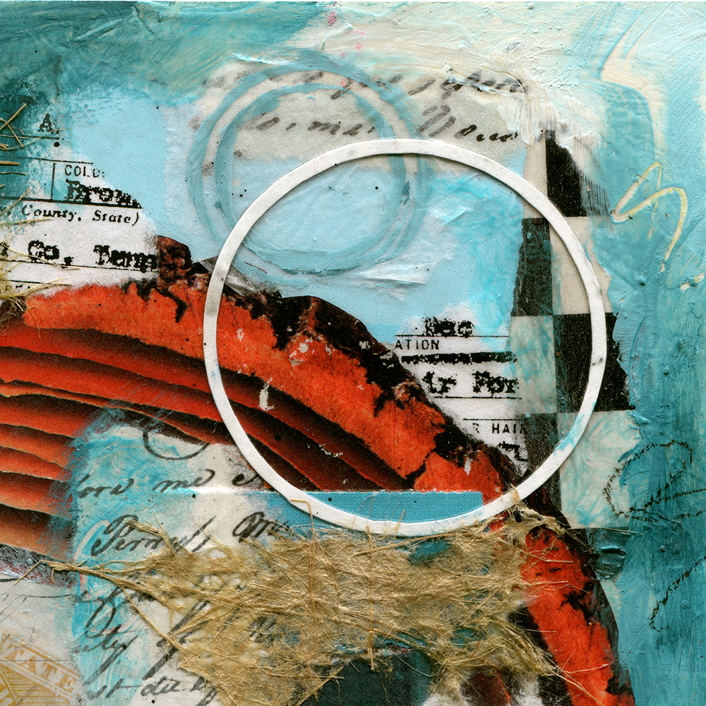 So I closed my eyes, let go of my thoughts, and offered the collage I was about to create to a higher power. When my eyes opened, I kept my mind still as I sifted through the collage papers before me, selecting elements that made my heart tingle as they were touched. If I got “stuck”, I would again quiet my mind, and then continue to touch the collage papers until I felt the quiver in my heart say “try this”.