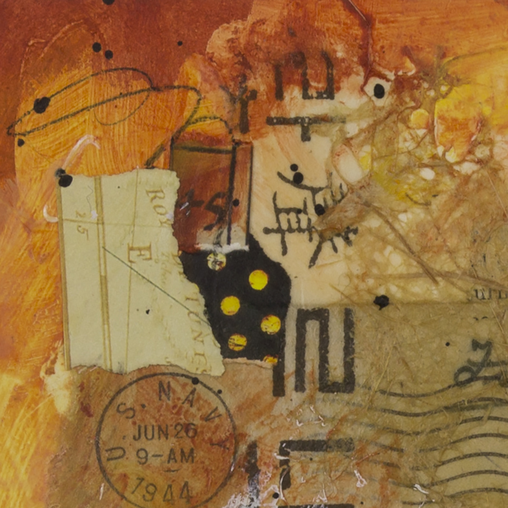 - Created with gouache, acrylic, and collaged papers on mixed media substrate