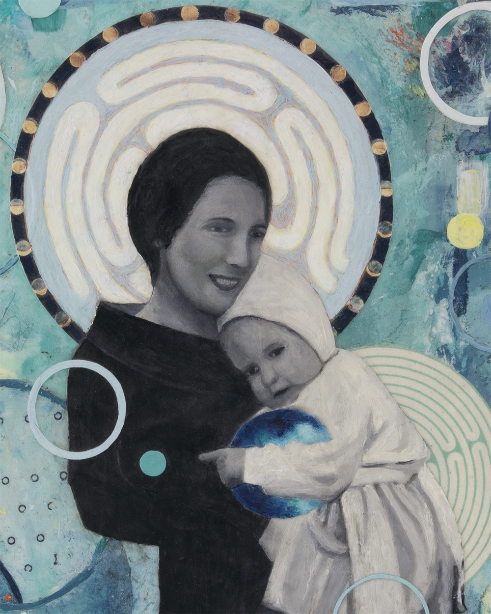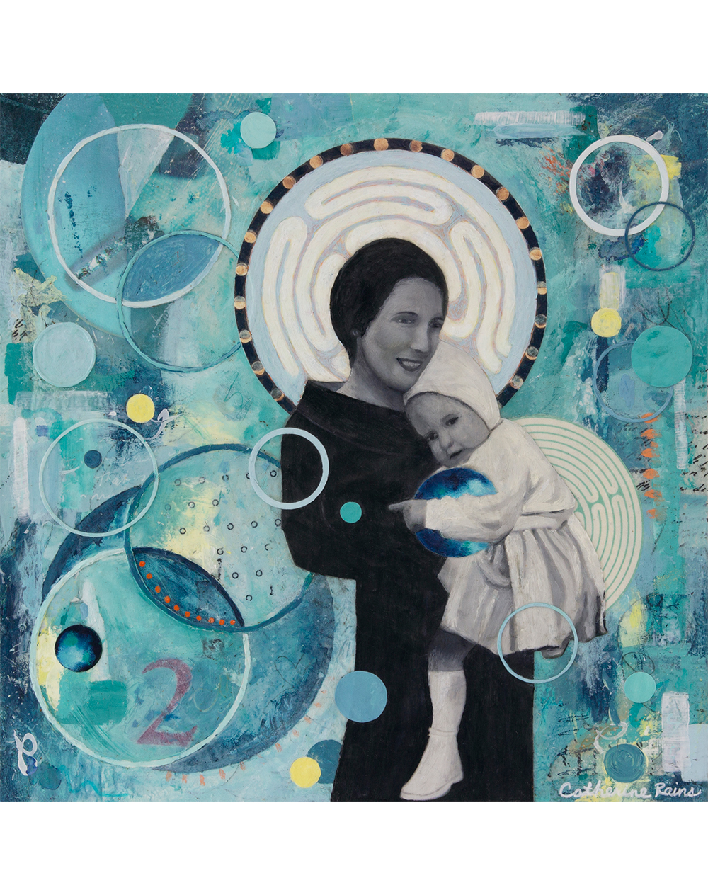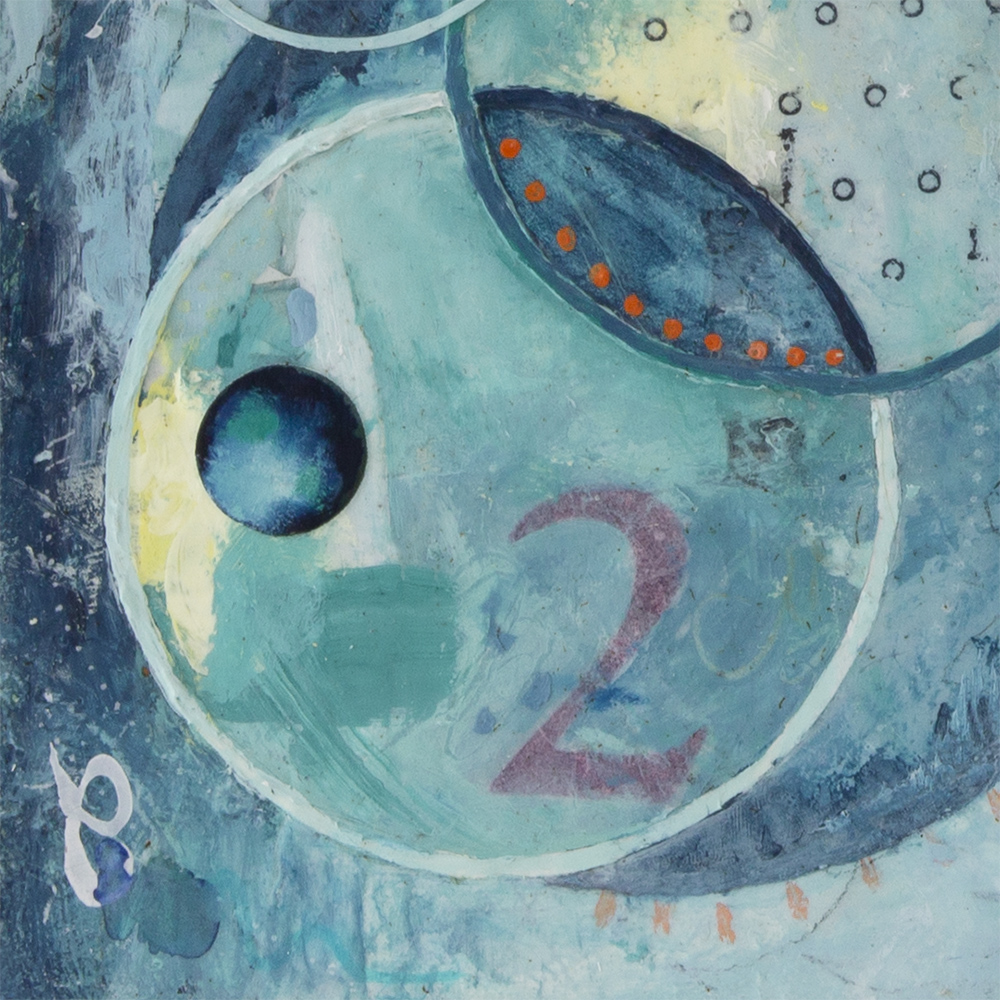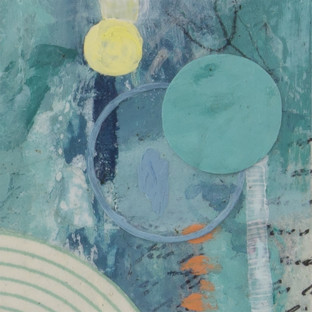 - Created with 10+ layers of acrylic paint and paper on wood panel