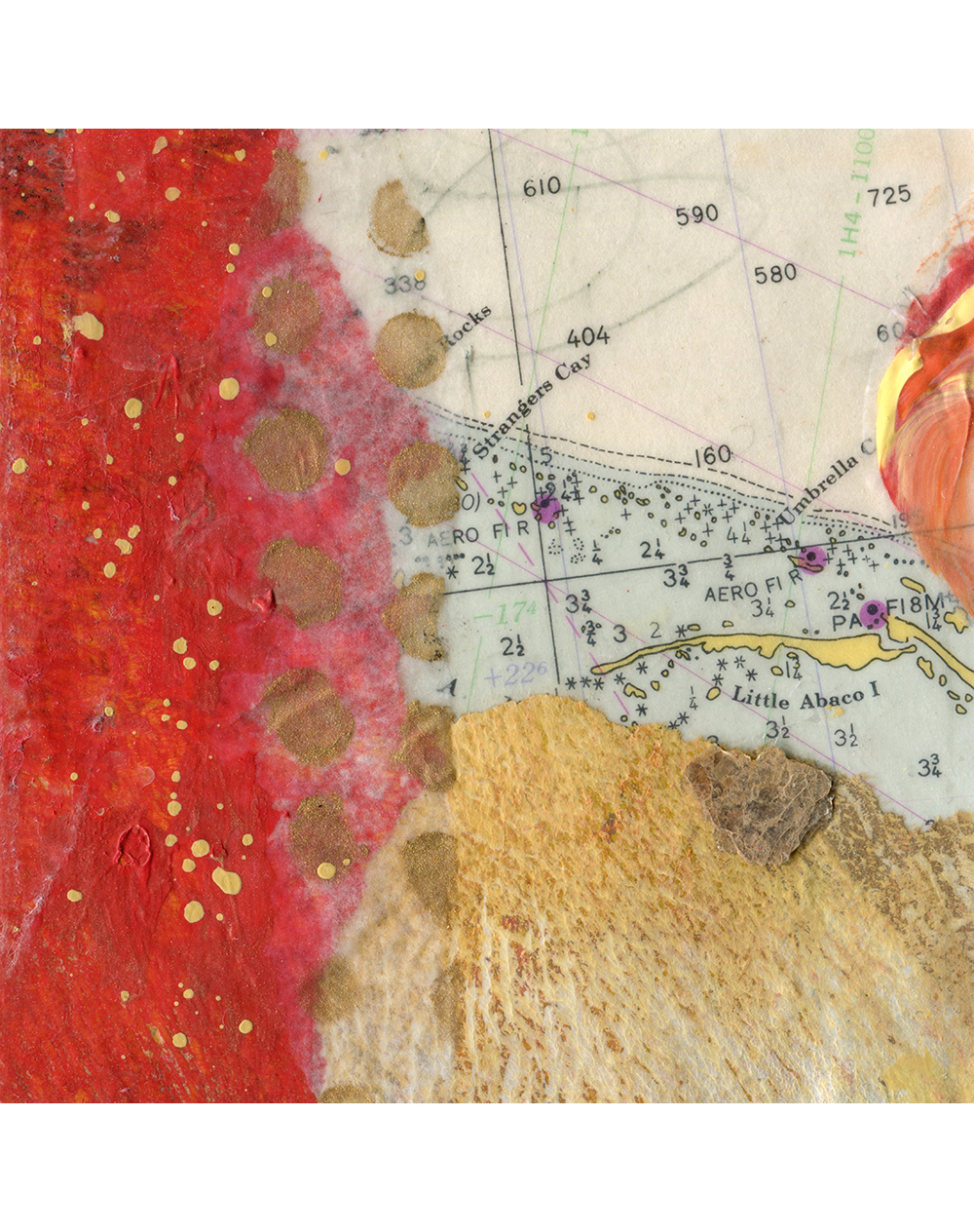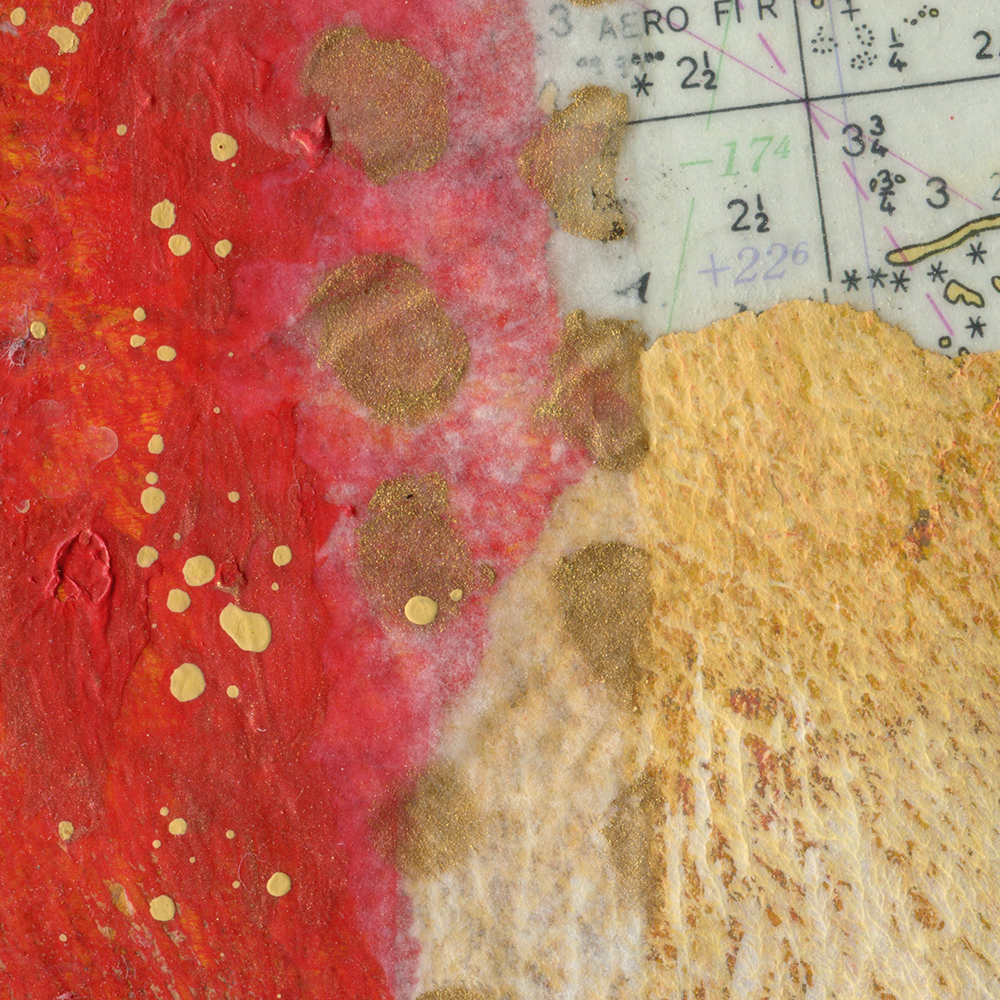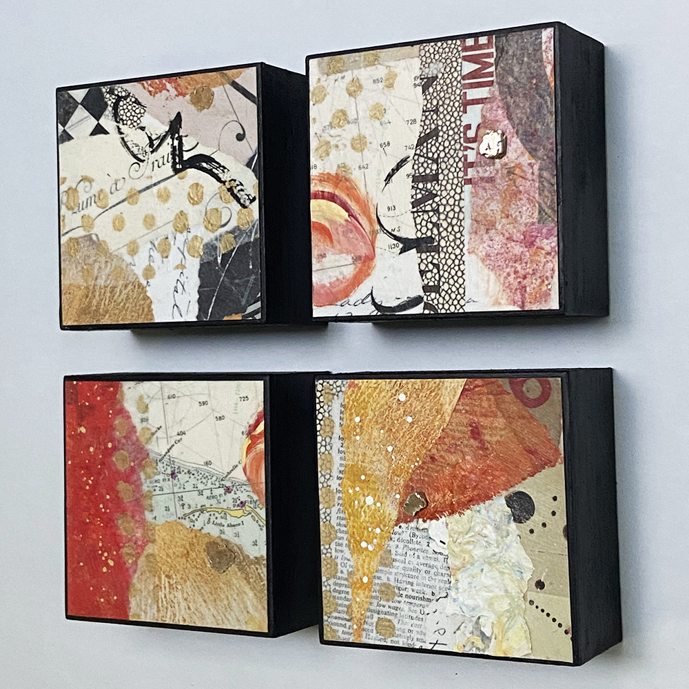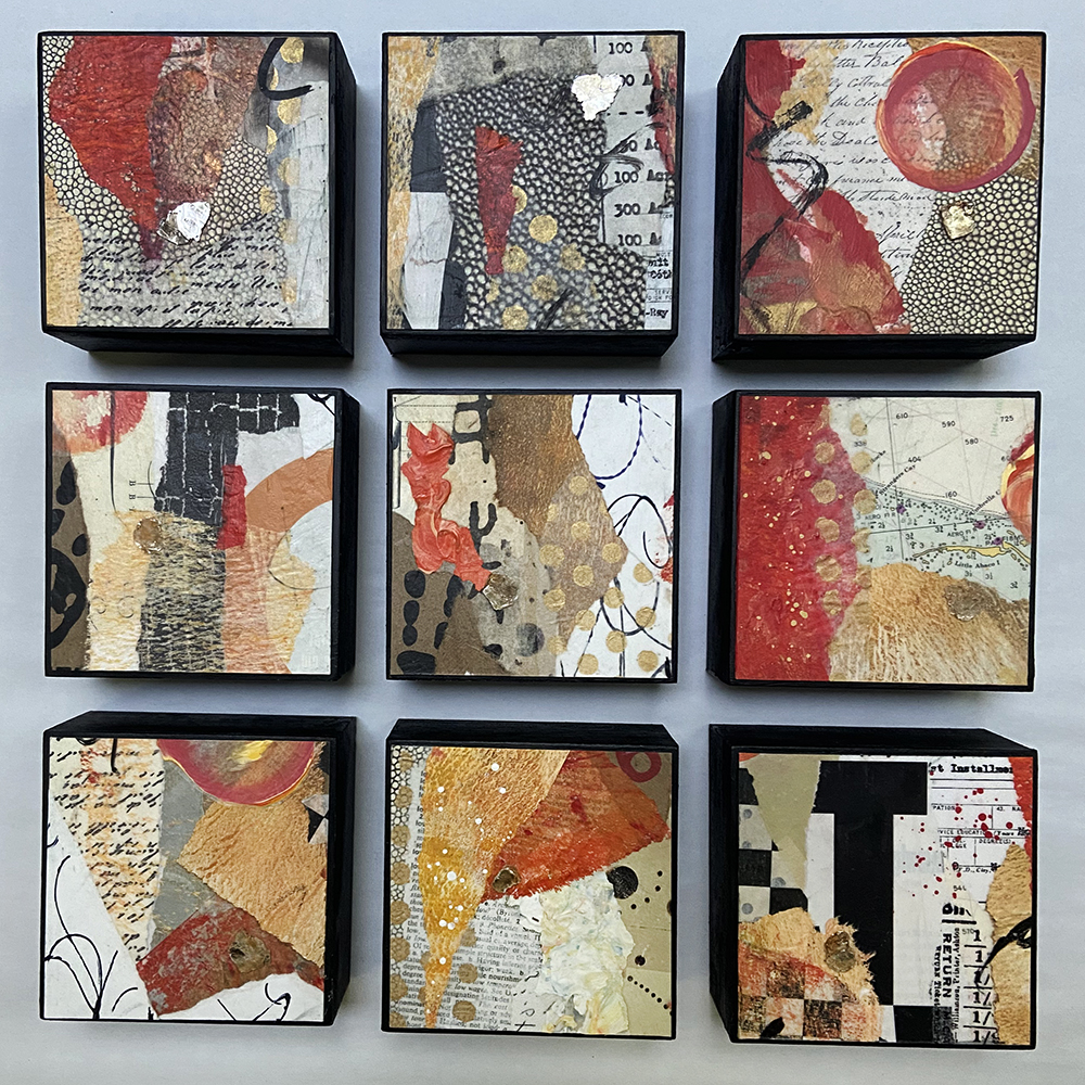 • Created with hand-painted monoprints, collage papers, and acrylic paint